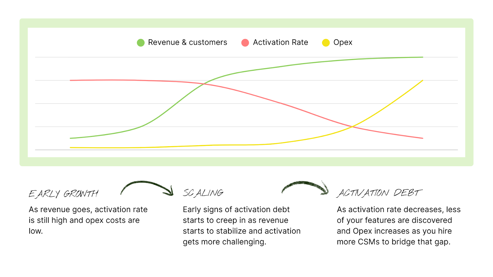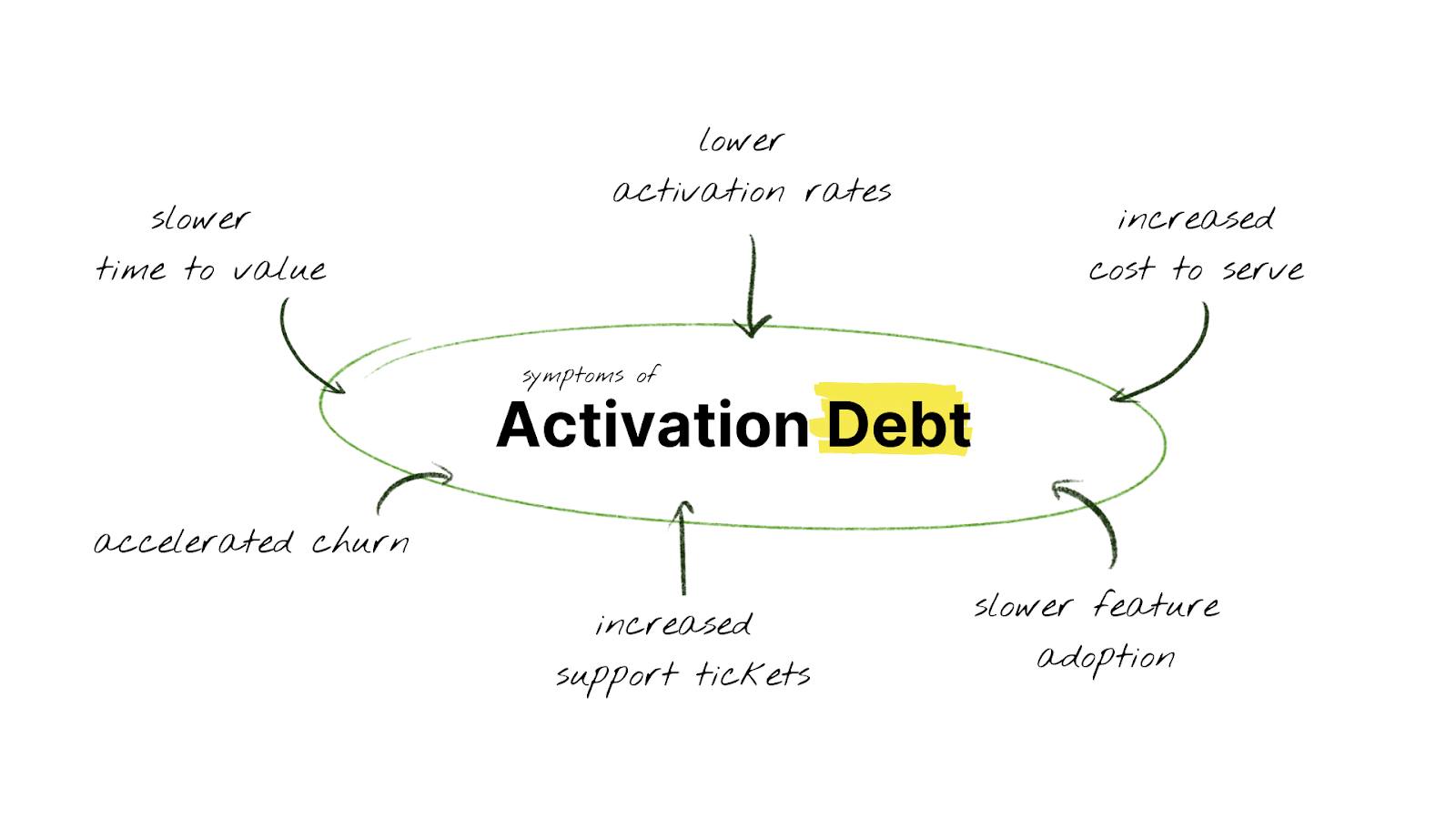 Activation debt is not always obvious because it spreads across many parts of your business. Like technical debt, it doesn't show up as one clear problem but instead surfaces in different ways depending on the underlying causes and where the friction occurs.