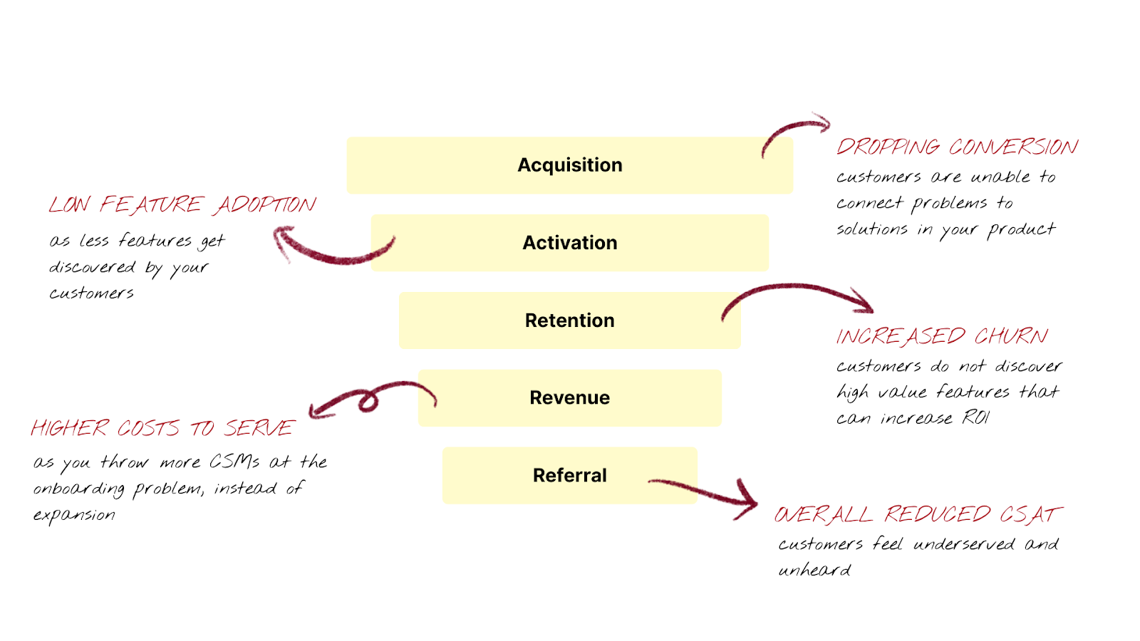 - Increased churn as customers conclude your product isn't worth the investment, not because it can't solve their problems, but because they never discovered it could